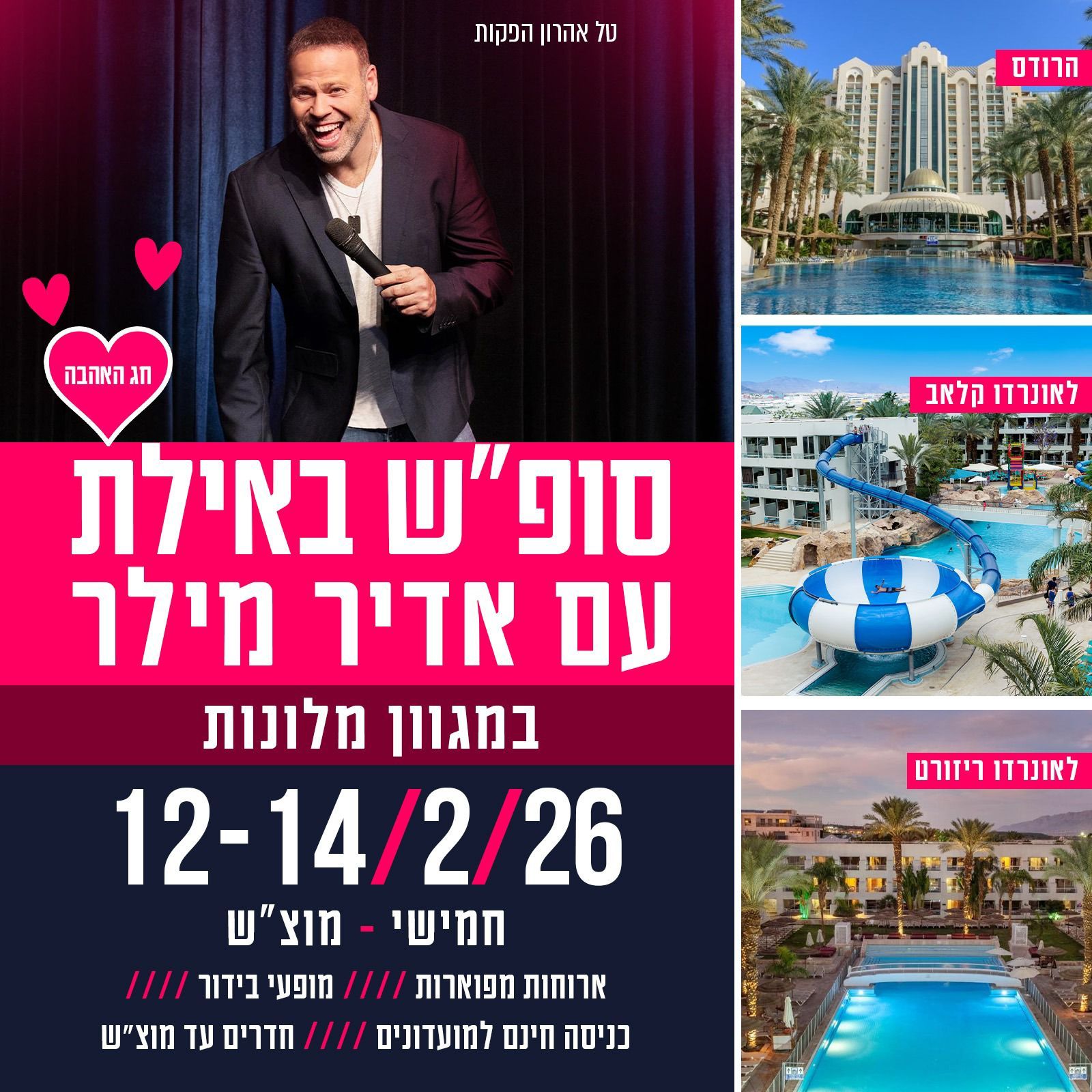 🎶 סופשבוע חג האהבה האילת כולל כניסה להופעה של אדיר מילר 🎉